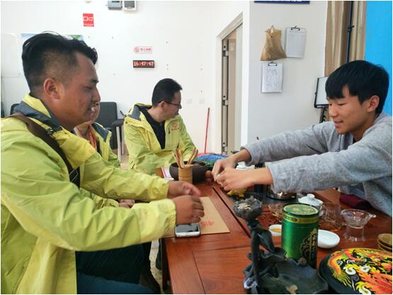 图为 受助学生给IN138团队老师奉茶