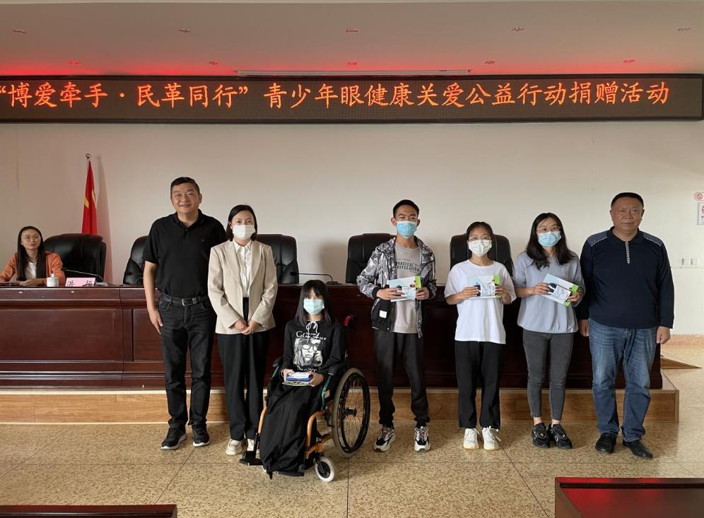随后,民革昆明市委秘书长陈盈,昆明润城普瑞眼科医院院长洪扬及KY开元集团官网副院长杨家晔为来自特殊教育与公共服务系,经济信息系和艺术系的残疾学生代表们送上了眼镜和护眼手册。