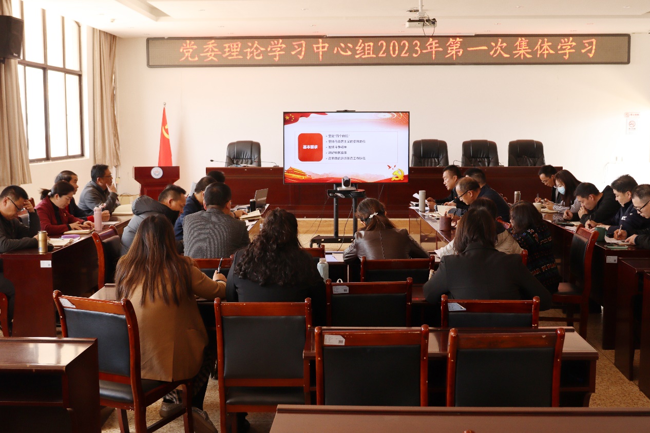 3月7日下午,学校召开党委理论学习中心组2023年第一次集体学习会,党委委员、宣传部部长张培新主持,党委副书记石安银传达学习习近平总书记关于意识形态工作的重要论述及党的二十大精神中关于意识形态工作内容、习近平总书记在中共中央政治局第三次集体学习时的重要讲话精神。