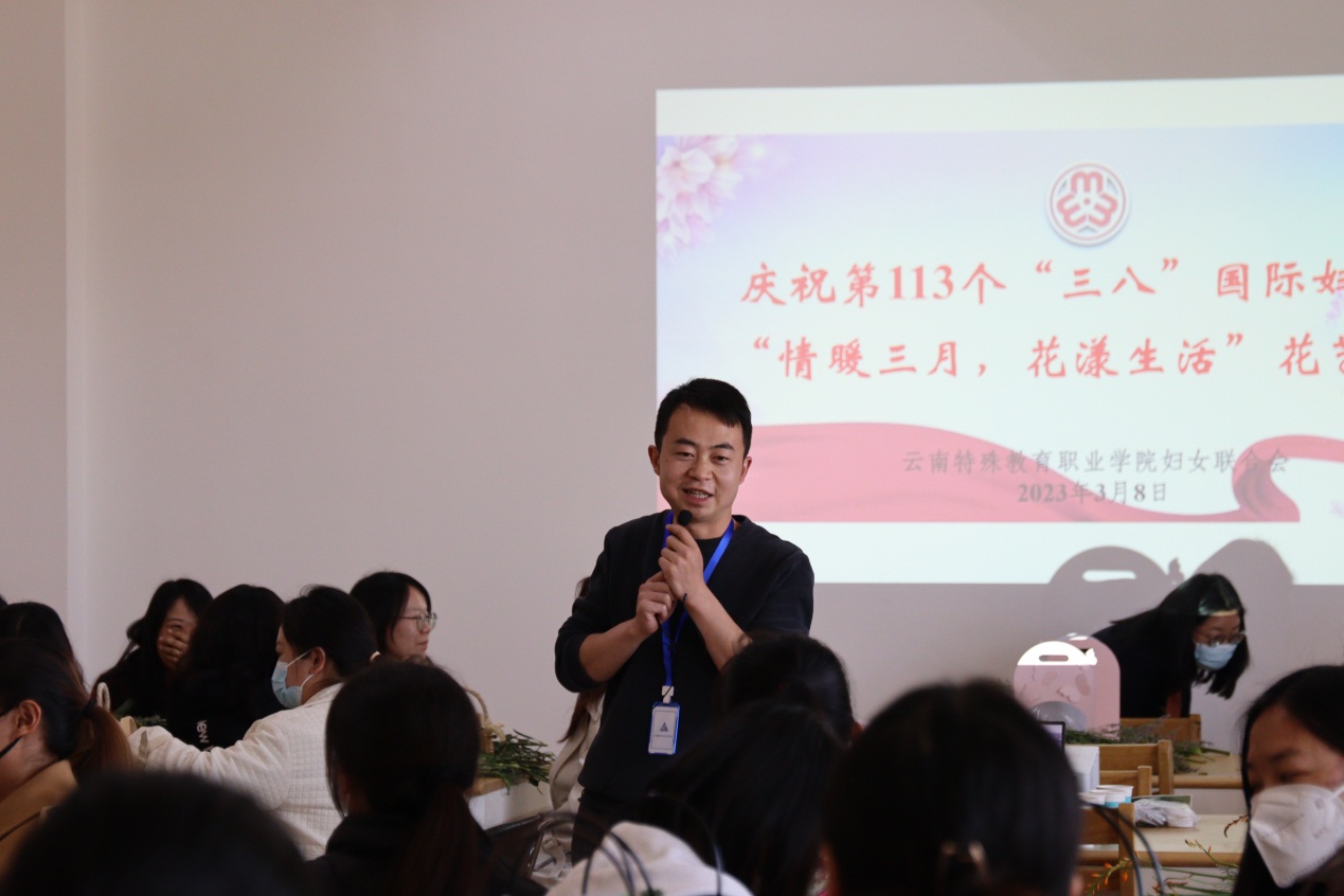 妇联主席石红在致辞中回顾了2022年学校发展中广大女教职工付出的辛勤努力和取得的成绩,希望全校妇女同胞高举习近平新时代中国特色社会主义思想伟大旗帜,坚定理想信念,心怀家国,志存高远,在践行新发展理念中激扬巾帼之志,争做“两个确立”忠诚拥护者、“两个维护”示范引领者;勇于担当作为,在推动学校高质量发展中勇担巾帼责任,争做本职岗位的表率;弘扬时代新风,在倡扬中华民族家庭美德中发挥独特作用,涵养好家规、好家风,争做家风建设的模范;不断增强本领,在追逐梦想中书写巾帼风采,为奋力开创特职院美好未来贡献巾帼力量!妇联要更加积极主动地联系女教职工和女学生,当好妇女群众的“娘家人”,助力学校的发展。