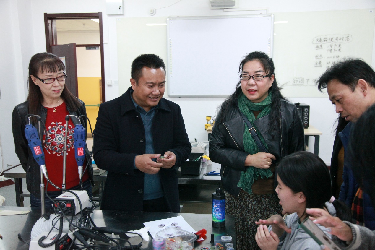 参观听障学生工艺作品展览室