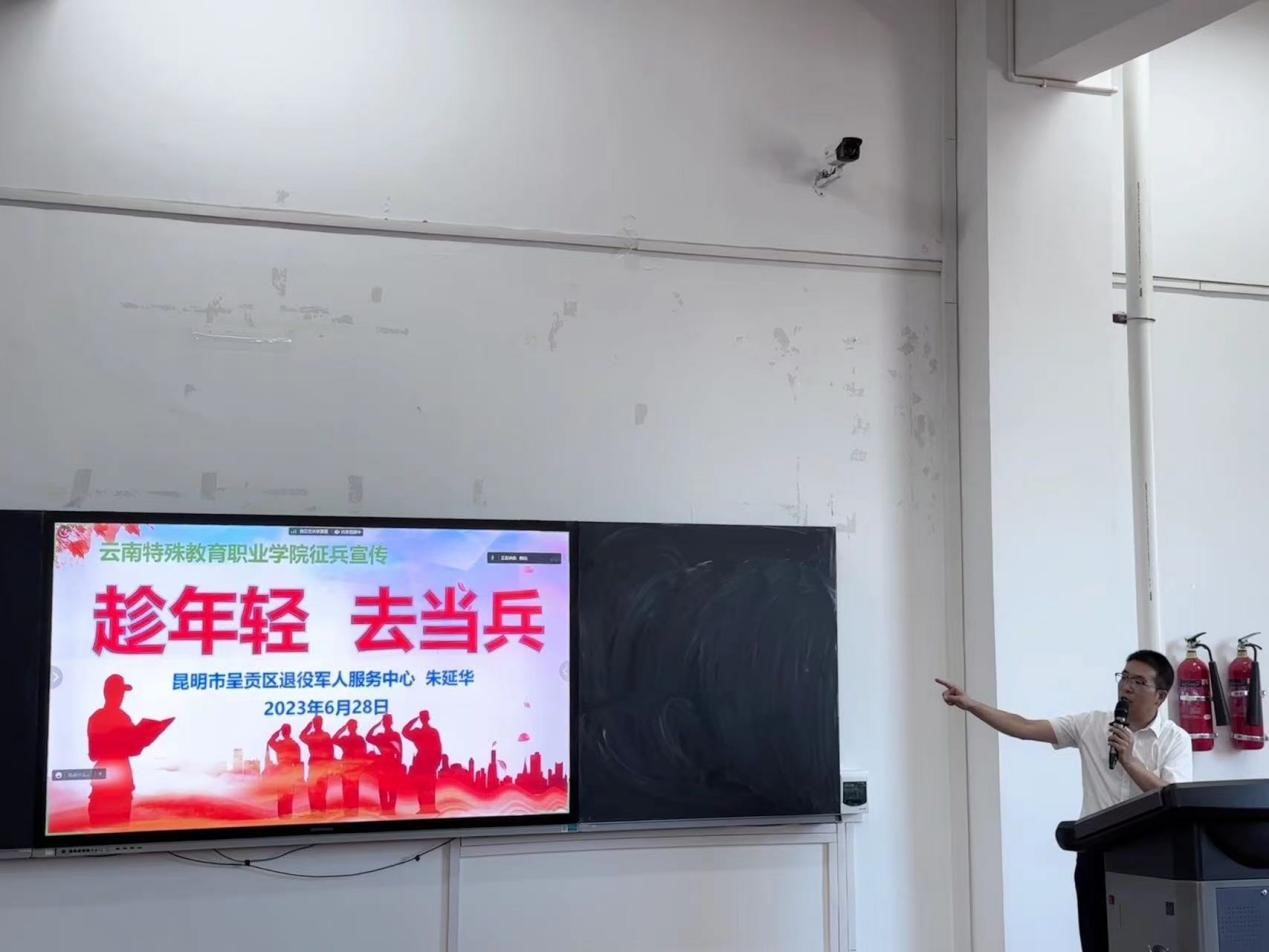 为深入学习贯彻党的二十大精神和习近平强军思想,进一步树牢大学生国防意识,发扬爱国奉献精神,鼓励广大青年学生积极响应国家征兵号召。2023年6月28日,学校武装部在玉璋楼报告厅举办2023年征兵宣传动员会暨退役大学生复学欢迎会。学校党委副书记石安银、呈贡区退役军人服务中心主任朱延华、学生处(团委、武装部)干部、三系副书记、辅导员、国防后备连学生及21、22级350多名学生参加活动。会议由学生处副处长陶柯妤主持。