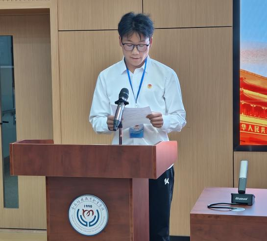 T22特殊教育四班丁竟原作为本期学员代表发言。他表示:“作为新时代的大学生骨干,我们应从自身做起,努力做到以下几点,争做新时代合格的青年马克思主义者。首先,时不我待,只争朝夕。其次,学做标兵骨干,勇担青春使命。”