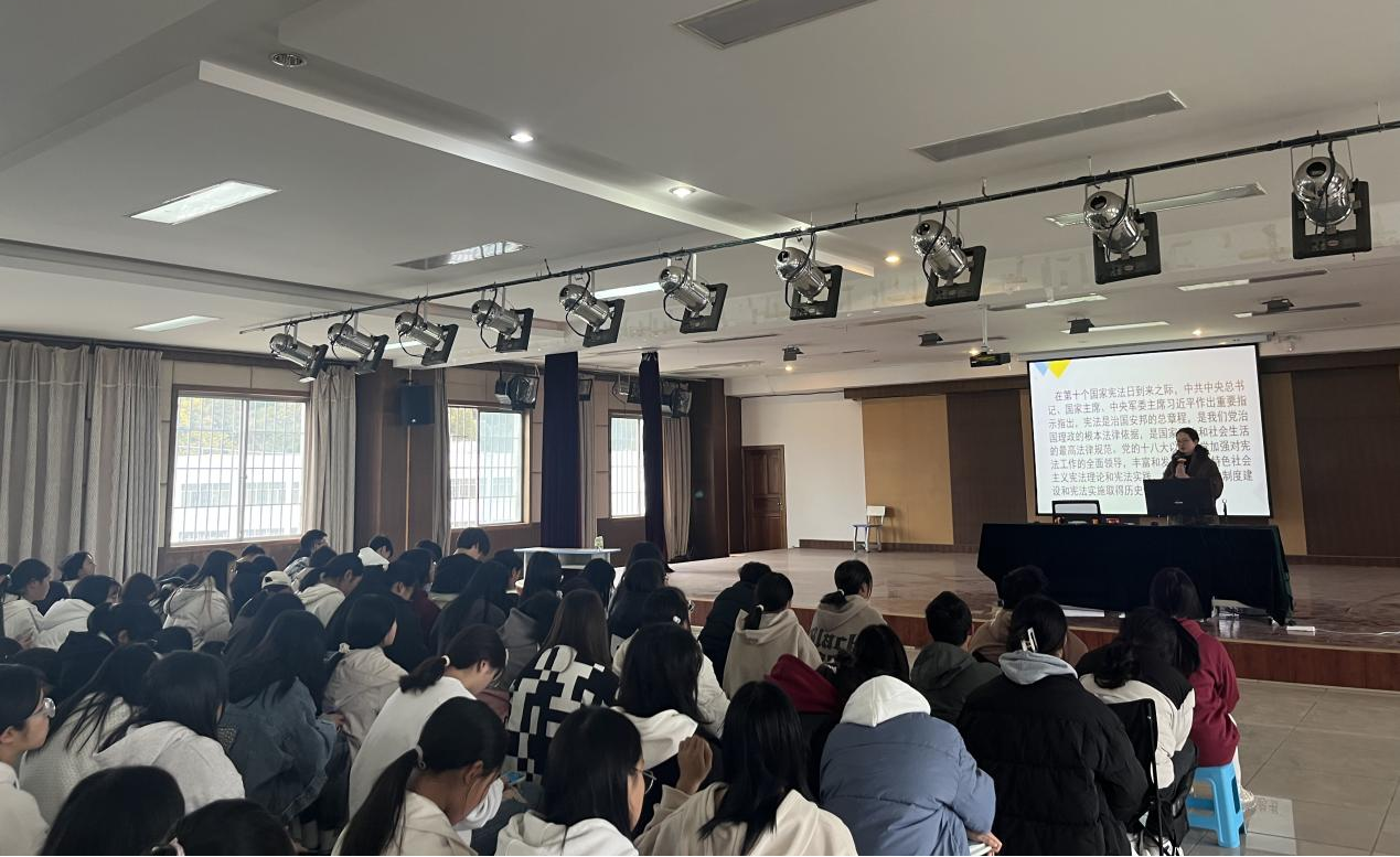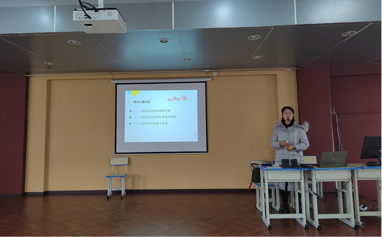 在本次的宣讲活动中,王丽萍老师以我国宪法的地位、基本原则和加强宪法实施与监督两个主题进行了宣讲。柳琴老师从我国宪法的形成和发展引导学生加深对宪法的了解。刘安惠老师围绕着近期主流媒体关于宪法的阐释,引导学生加深对宪法的重要意义的认识。杨宗源老师通过案例讲解,由浅入深引导学生认识宪法精神对于国家建设、个人成长成才的重要意义。王乃荣老师和陈金艳老师通过向同学们讲述生动的案例以增强法治宣传教育实效。