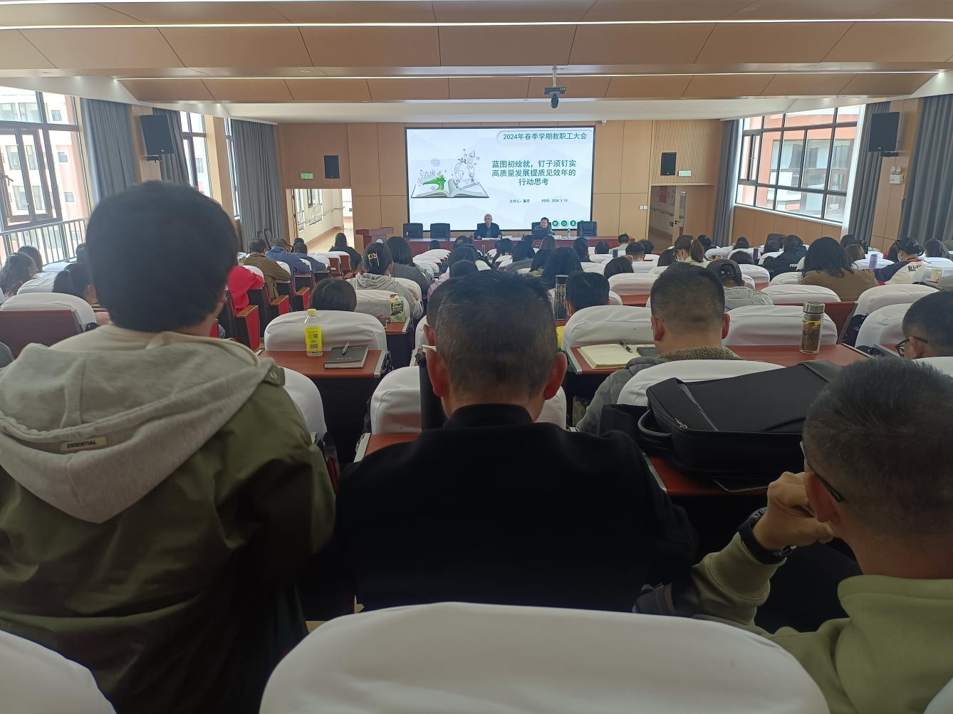2024年是学校实现“十四五”规划和学校教育高质量发展“三年行动计划”承上启下的关键之年,为实现“2024年提质量”的目标,确保各项工作平稳有序开展,学校于3月13日组织召开了全校教职工大会。会议由党委书记孙继先主持,校领导、全体教职工参会。