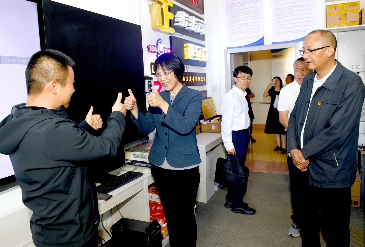 调研组全面了解学校建设发展情况,走进实训室和课堂与师生进行深入交流,关心询问师生学习工作情况,勉励他们自强自立,努力学习工作。