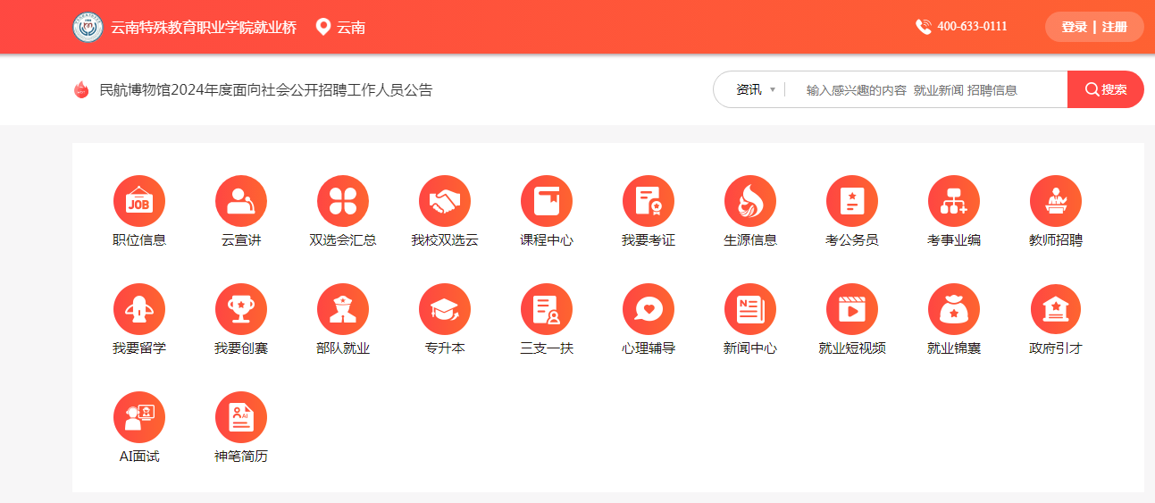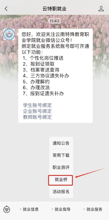 为了更好地服务KY开元毕业生,方便学生及时了解、查询就业相关资讯、政策及职位信息,云南特殊教育职业学院专属就业桥上线啦!