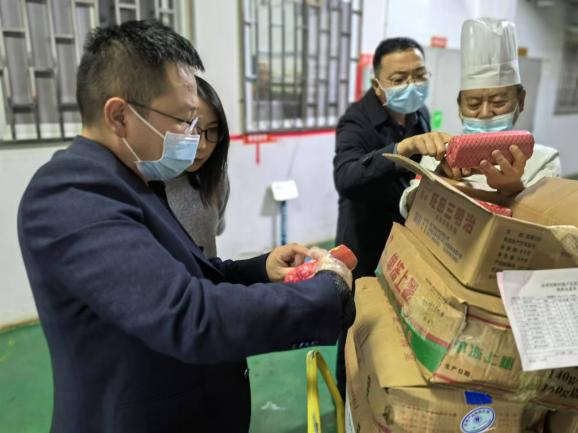 为切实保障广大师生校园食品安全,10月21日下午,学校校长董亮、纪委书记杨健智带队对呈贡校区2个食堂开展食品安全隐患排查,纪检处、后勤服务中心等部门负责人参与排查。检查组来到学校一食堂、二食堂,认真听取食堂供餐工作详细汇报,详细了解食品原料采购渠道、饭菜价格及菜品质量、餐饮器具设施消毒、食堂用电安全、防四害等,在现场进行食材验收后,对操作间、仓库卫生及管理的情况及食堂留样柜、食品卫生安全、每日台账等仔细检查。