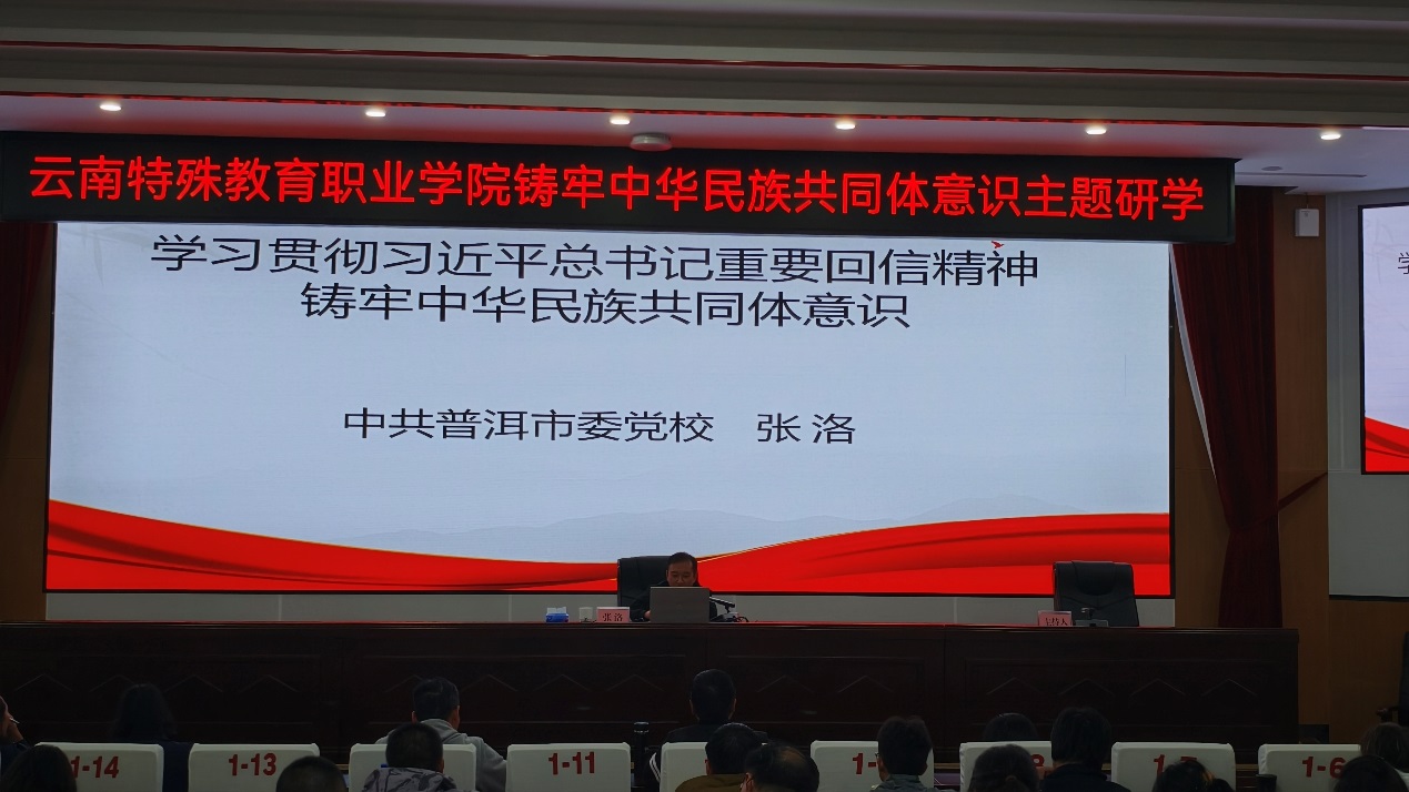 晚上,市委党校张洛教师为师生们带来了一场以“学习贯彻习近平总书记重要回信精神————铸牢中华民族共同体意识”为主题的专题党课。全体研学人员深入学习了习近平总书记给普洱民族团结誓词碑盟誓代表后代的回信原文,回顾了普洱民族团结誓词碑的历史。师生们认真聆听、积极互动,不仅加深了对中华民族共同体意识重要性的认识,也激发了大家为民族团结进步事业贡献力量的决心。