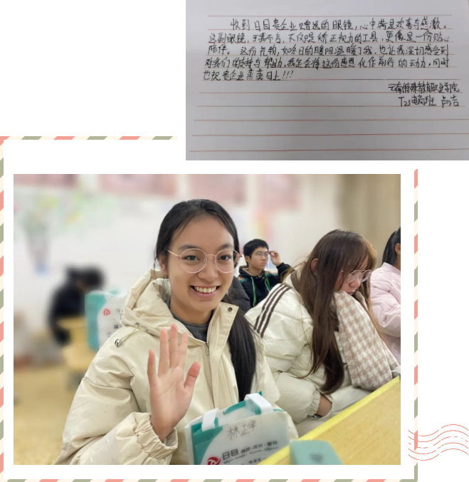 11月6日云南日目商贸有限公司到校进行视力检查检测服务后,于11月27日,公司负责人姜增鸿携旗下日目眼科团队将精心配制的60副光学眼镜捐赠给了60名残疾学生,此次捐赠的眼镜总价值为5万余元。