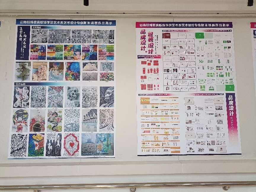 艺术设计专业的师生们展示了他们在产品包装设计、版式设计课程中的教学成果,作品稍显稚嫩,但设计新颖,构思巧妙。