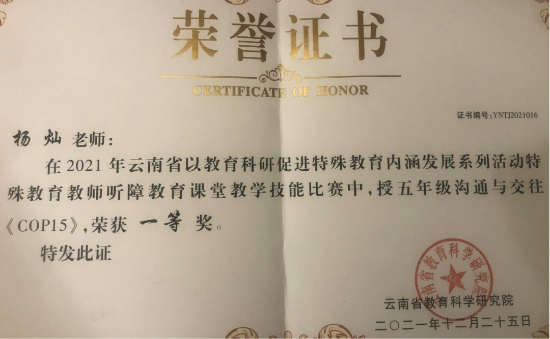 先讲一件小事,我在北师大校长培训班学习,家族孙女杨雪当时是中央民族大学的新生,想到北师大来看看,我让她随机听了王艳教授的课,她课间就说要考特殊教育硕士,后来果然考上了,2024年又考上了融合教育的博士,现在是广西师范大学的一名教师。像这样受我影响从事特殊教育的人还有我的儿子——杨灿,他现在是昆明盲哑学校的一名教师,是昆明电视台一周要闻的手语主播,还有我的侄孙子,现在在盐城特殊教育学校任教。还有侄孙女,现在是滇西科技师范学院特殊教育专业本科学生。这在42年前的1983年是不可想象的,那时人们不了解特殊教育,也害怕从事特殊教育。我被分配到曲靖聋校,直到2023年退休才知道我是分配到曲靖聋校的最后一个被谈话的学生,也直到2023年才有同学当面证实。不过,社会的进步在于使人们学会接纳不同。包括我自己,我是干了才日益热爱特殊教育,特殊教育在今天已然成为热门选择,就我们学院来说特殊教育专科最高分2024年超本科线9分。