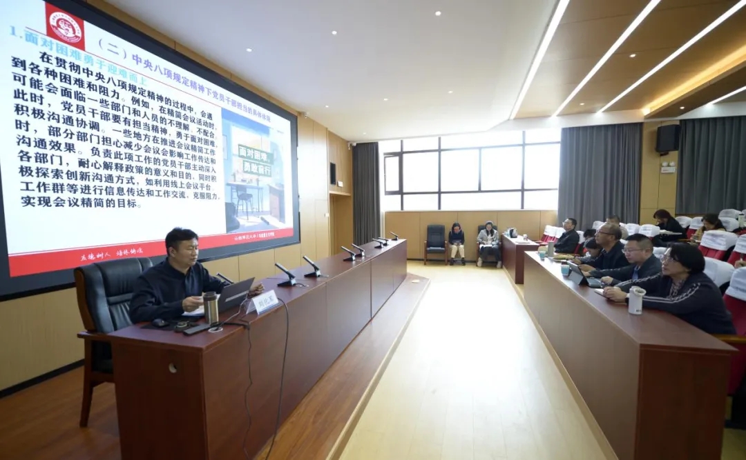 个人自学阶段,学员们系统研读《习近平关于加强党的作风建设论述摘编》,依托“学习强国”“云岭先锋” 等平台深化理论武装,实现了理论学习的自主性和常态化。在辅导讲学环节,特邀云南师范大学马克思主义学院院长刘化军教授作《深入贯彻中央八项规定精神学习教育,强化党员干部自身责任担当意识》的专题辅导。刘教授围绕“作风建设与责任担当”,深入解读中央八项规定精神实质、违反中央八项规定精神的主要表现,以及贯彻落实的主要举措。广大学员认真学习、深入思考,在以党支部为单位开展的研讨研学中,学员们结合自身工作实际,围绕如何贯彻落实中央八项规定,如何加强作风建设、提高工作效能等问题,展开了热烈讨论,分享经验做法,提出了许多有针对性、建设性的意见和建议。大家通过交流研讨,进一步找准了工作中存在的差距和不足,明确了改进方向和工作重点,为推动学校各项工作高质量发展,奠定了坚实基础。
