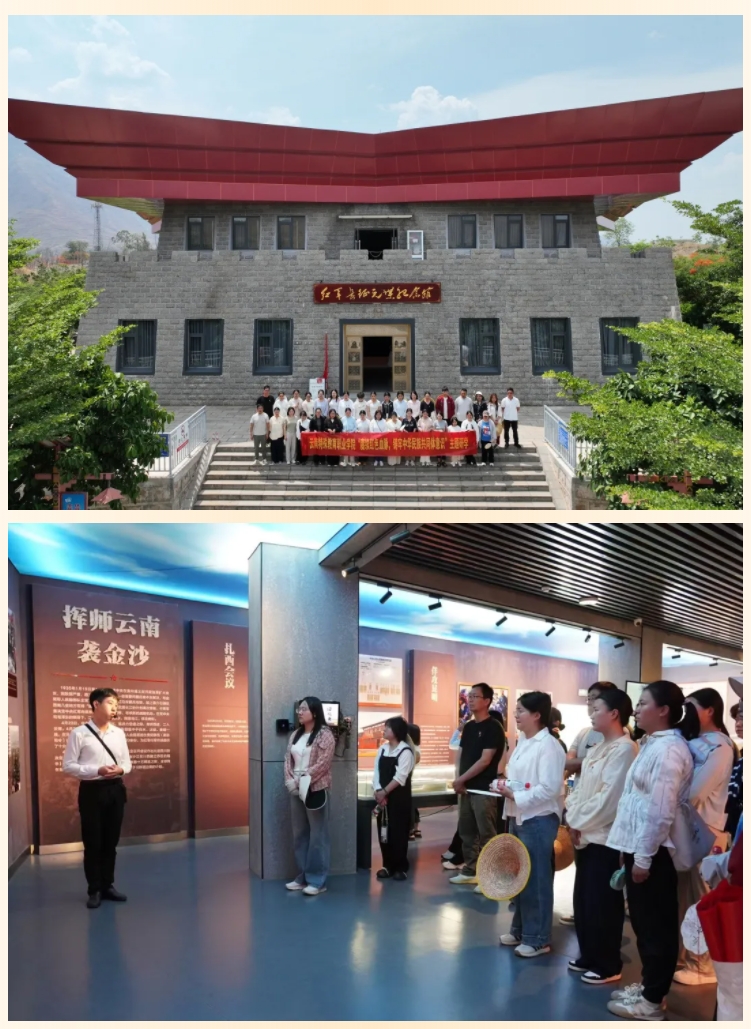 “金沙水拍云崖暖,大渡桥横铁索寒……”10号上午,师生们抵达元谋县龙街红军横渡金沙江渡口,参观红军长征元谋纪念馆,大家怀着无比崇敬的心情走进纪念馆,仔细聆听工作人员的讲解,观看一幅幅生动的展览。红军长征过元谋、龙街渡口诱敌佯渡金沙江等革命故事,让师生们感受到红军长征的艰难险阻,体会红军战士的非凡智慧和大无畏的英雄气概,一同回顾中国共产党领导中华民族从站起来到富起来,再到强起来的辉煌历程。