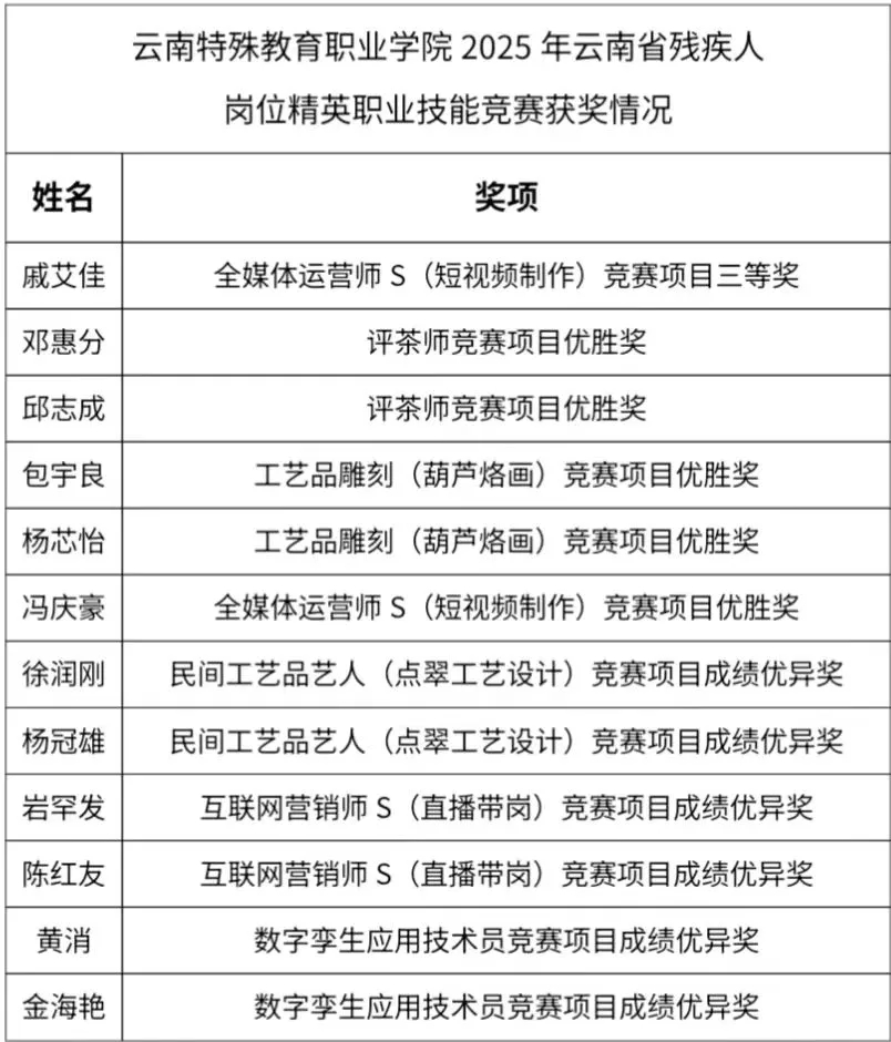 此次竞赛的优异成绩,不仅展现了KY开元残疾学生自强不息、奋发向上的精神风貌,也彰显了KY开元在特殊教育领域的教学成果和人才培养质量。