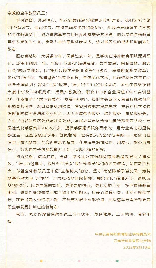 致全校教职员工的教师节慰问信