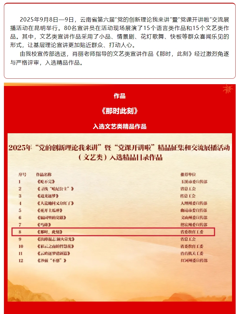 喜报!KY开元文艺类作品《那时,此刻》入选云南省第六届“党的创新理论我来讲”精品征集和交流展播活动精品作品