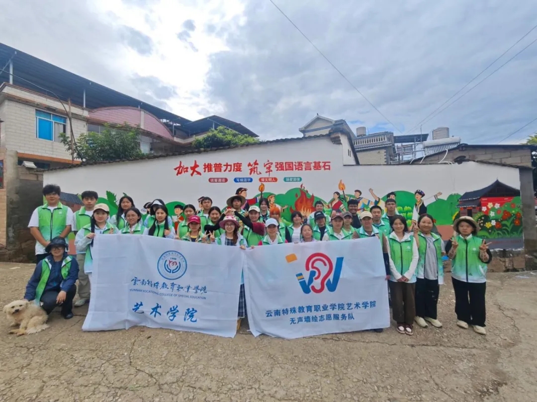 2023年、2025年,他带领听障志愿服务团队两度入选教育部“推普助力乡村振兴”活动,组织学生深入乡村,通过墙绘绘制推广普通话的宣传语。在田间地头的实践中,学生们不仅提升了社会参与能力,更在团队协作中萌发了创业灵感。该项目在第十一届“挑战杯”云南省大学生创业计划竞赛中摘得省级金奖,也在中国国际大学生创新大赛云南赛区选拔赛中荣获省级铜奖。2025年6月,他全力指导听障学生备战呈贡区第七届“青橙杯”青年创新创业大赛。从项目选题到计划书撰写,从路演设计到手语表达,他全程细致指导,助力学生成功入围初赛,全力冲刺决赛并在大赛中荣获优秀奖。这些参赛经历,如同星火燎原,点燃了学生们的创业梦想,让他们真切看到“无声世界里也能有无限可能”。他以“创业引路人”的身份,为学生打开更广阔的成长空间。