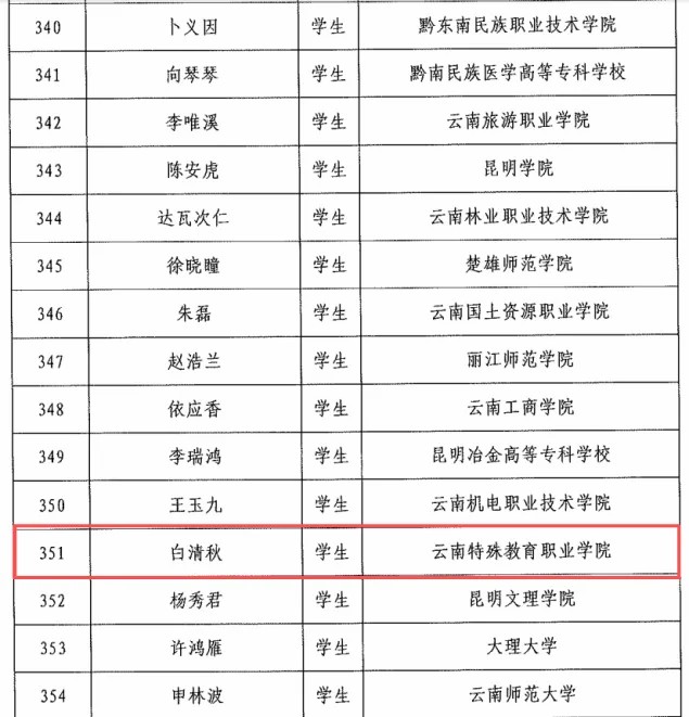 白清秋同学为彝族,1999年6月出生,中共预备党员。在校期间,她潜心钻研传统技艺,毕业后积极投身基层,现任楚雄州南华县七彩彝绣文化传播有限责任公司设计师。她将专业所学与基层发展需要紧密结合,在彝绣文化的传承、创新与推广一线踏实工作,以实际行动响应国家鼓励高校毕业生服务基层的号召,展现了当代青年的使命担当。 此项荣誉不仅是对白清秋同学个人专业能力与奉献精神的肯定,也是KY开元长期以来坚持立德树人、引导学生服务基层、成长成才的育人成果体现。希望白清秋同学再接再厉,在基层岗位上继续贡献智慧与力量。在此号召全体同学以她为榜样,树立扎根基层、服务社会的就业观,让青春在祖国需要的地方绽放光彩。