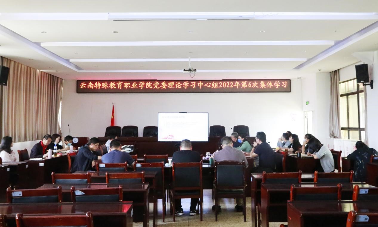 6月7日下午,学院党委理论学习中心组在诵弦楼614室举行2022年第六次集体学习。学习主题是习近平新时代中国特色社会主义思想、《中华人民共和国职业教育法》、《云南省“十四五”残疾人保障和发展规划》、《云南省“十四五”高等教育事业发展规划》、《云南省“十四五”职业教育发展规划》、《云南省“十四五”特殊...