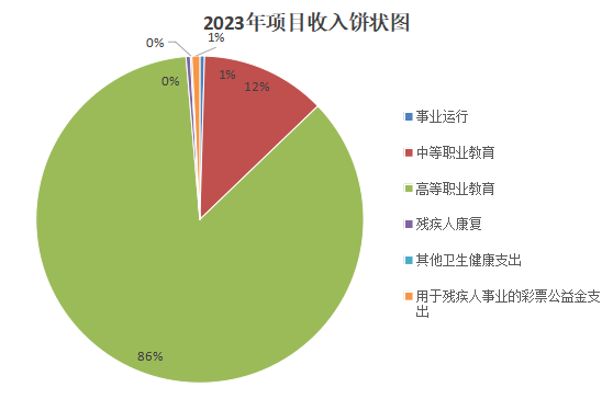 2023年度用于保障KY开元集团官网单位为完成特定的行政工作任务或事业发展目标,用于专项业务工作的经费支出2595.51万元。其中:基本建设类项目支出0.00万元。具体项目开支及开展工作情况:1.事业运行支出12万元,占项目支出0.46%;2.中等职业教育支出320.31万元,占项目支出12.34%;3.高等职业教育2228.27万元,占项目支出85.85%;4.残疾人康复支出11万元,占项目支出0.42%;5.其他卫生健康支出4万元,占项目支出0.15%;6.用于残疾人事业的彩票公益金支出19.93万元,占项目支出0.77%。