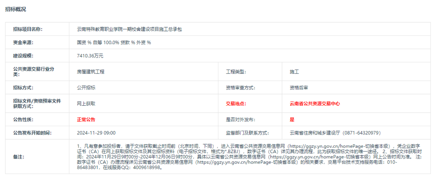 详情请见云南省公共资源交易信息网: