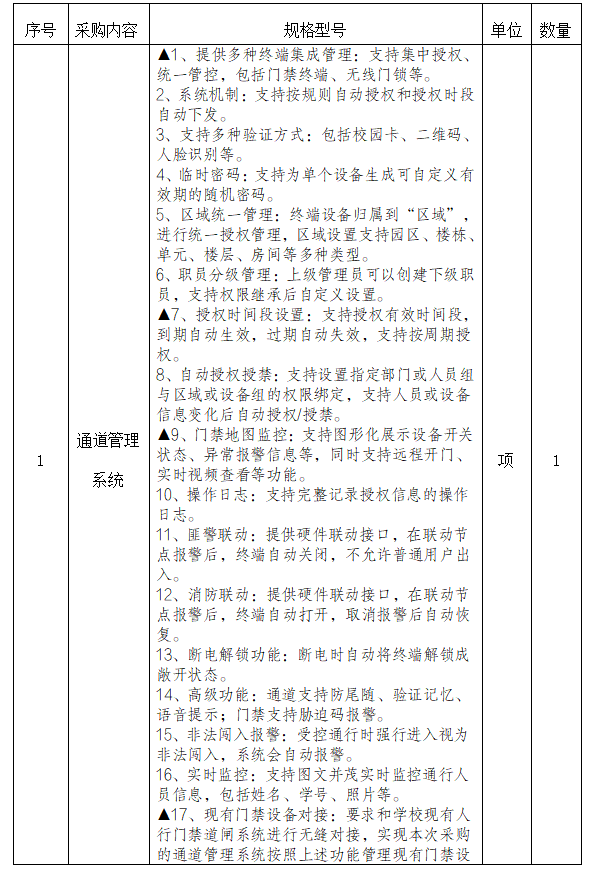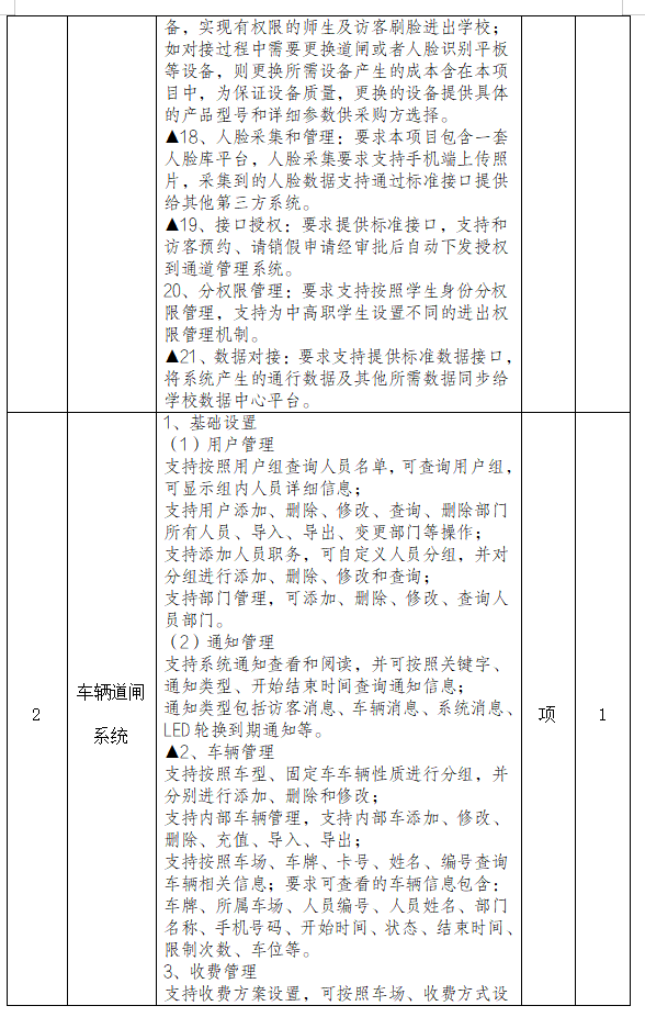 1.项目名称:通道管理系统和车辆道闸系统项目