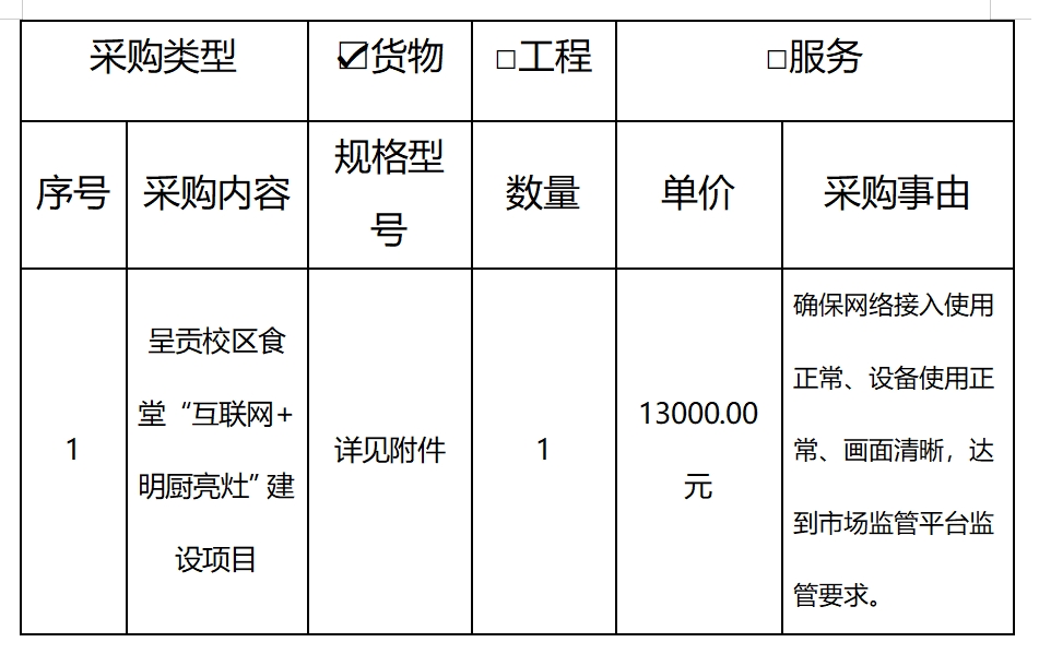 1、项目名称:呈贡校区食堂“互联网+明厨亮灶”建设采购采购项目