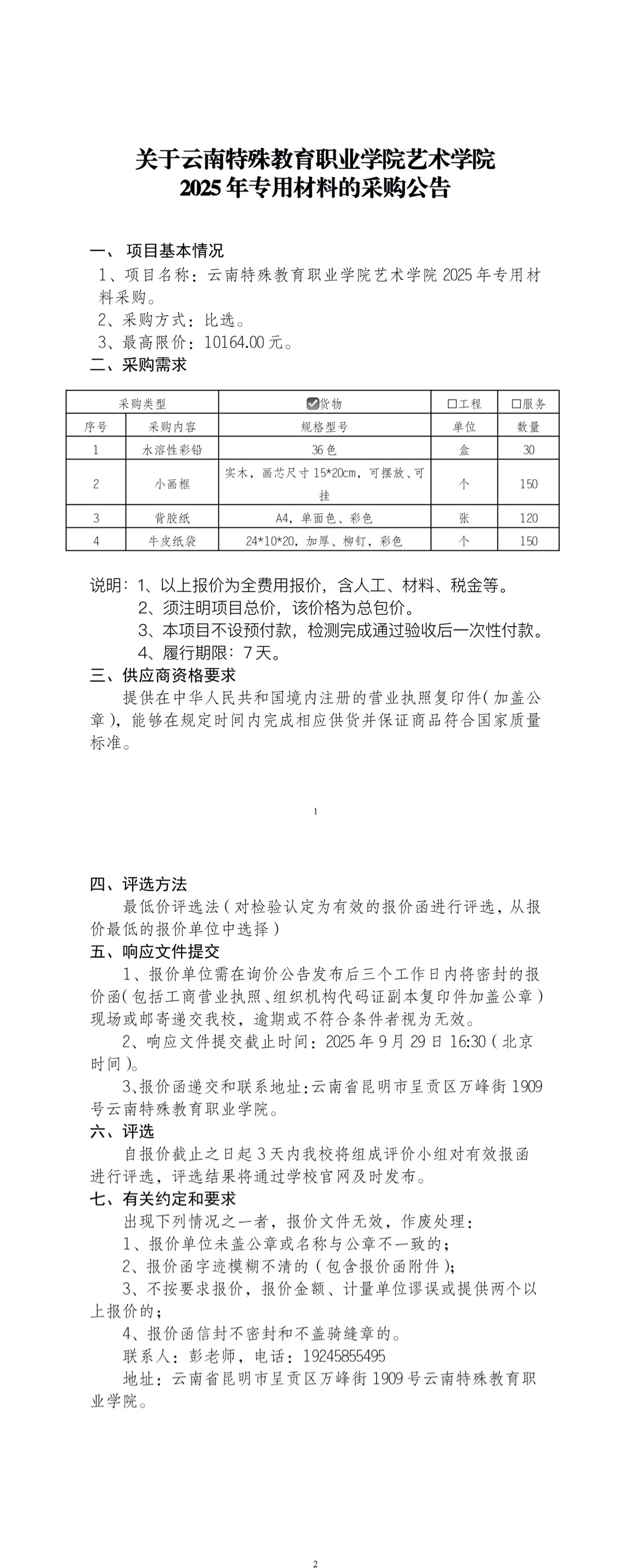 关于KY开元集团官网艺术学院 2025年专用材料的采购公告