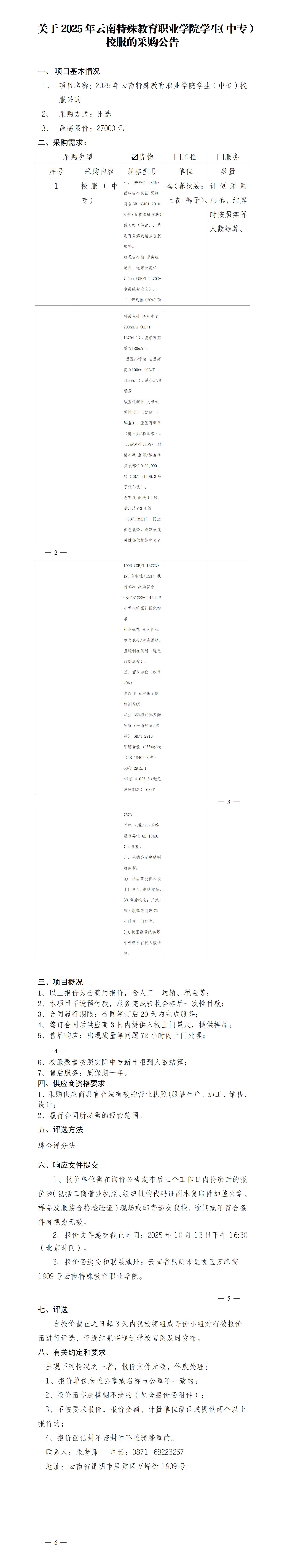 关于2025年KY开元集团官网学生(中专)校服的采购公告