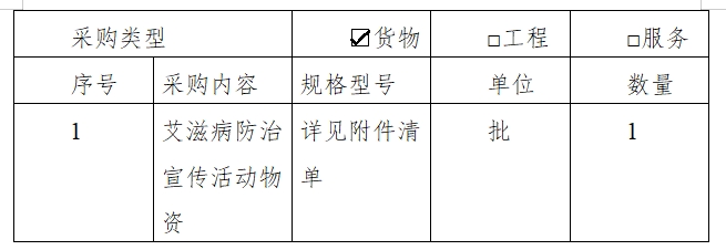1、项目名称:KY开元集团官网艾滋病防治宣传活动物资采购