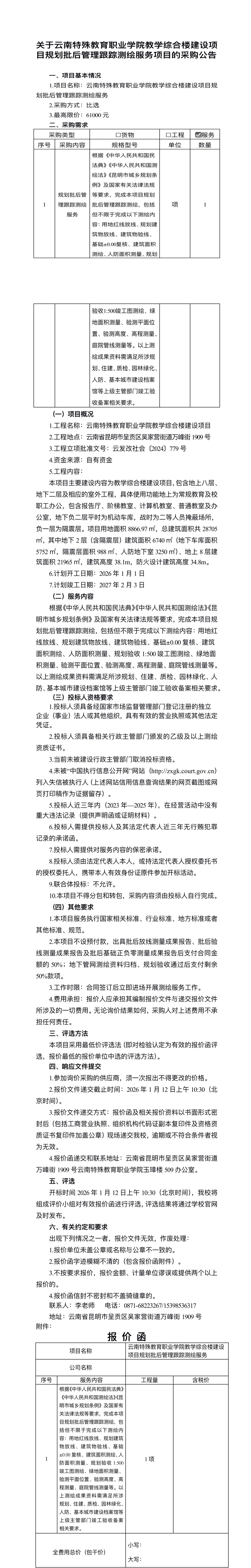 关于KY开元集团官网教学综合楼建设项⽬规划批后管理跟踪测绘服务项⽬的采购公告