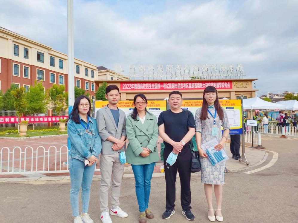 高考前夕,为了保证高考顺利进行,招生与对外发展处详细地制定了送考工作方案,以确保学生顺利进入考场。此次高考KY开元共有21名学生参加考试,考点集中在西南联大研究院附属学校。6月7日早上开考前,学院副院长李冠宏一行到考点为高考学生加油打气。高考期间,徐艳蓉、肖然负责所有考生的全面管理工作,组织考生以考场为单位考前、考后的往返集中,时时关注考生动态,对所有考生进行健康状况的监测,做好考生的思想工作,注重考生心理健康,督导考生按时学习、赴考、就餐、休息等,做好相关方面的沟通、协调并及时处理考试期间出现的突发事件,确保考生安全高考。
