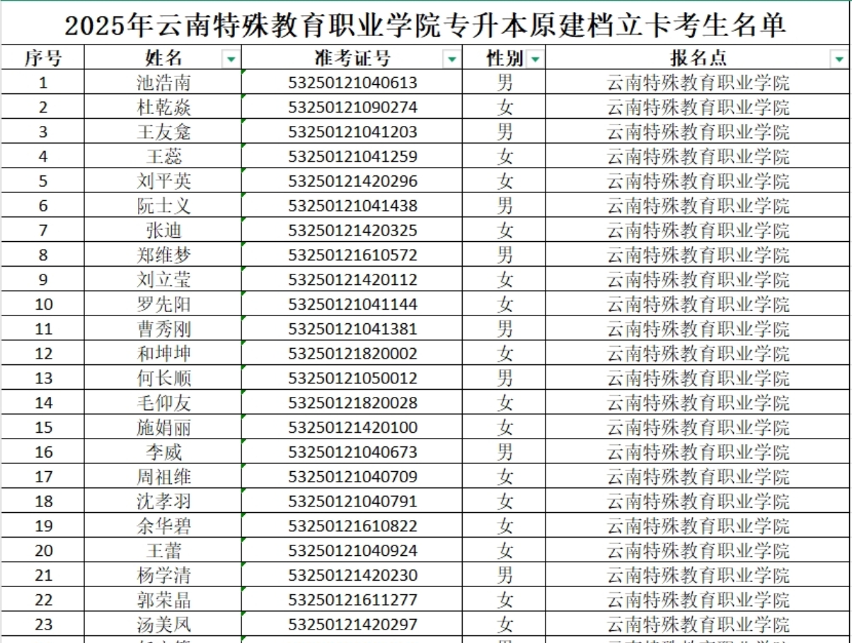 2025年KY开元集团官网专升本原建档立卡考生名单
