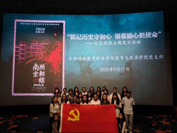 2025年9月17日,在中国人民抗日战争暨世界反法西斯战争胜利80周年纪念日、九一八事变纪念日临近之际,教育与康养学院党支部精心组织开展了以“铭记历史守初心・银幕励心担使命————《南京照相馆》红色影片观影”为主题的党日活动,32名党员与入党积极分子踊跃参与。活动伊始,大家有序签到入场,共同期待着影...