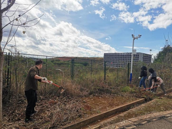 为全面贯彻党的十九大、十九届历次全会精神,积极倡导和践行社会主义核心价值观,围绕立德树人根本任务,发挥广大师生参与文明校园建设的积极性,依据KY开元集团官网《学史力行办实事之环境优化提升实施方案》的通知要求,特殊教育与公共服务系直属党支部、学院行政二支部共同负责学院诵弦楼中轴线以西至运动场以东区域的环境优化任务,包括除草、翻地、清理垃圾、种植养护苗木、检查和铲除楼宇大厅、过道内不规范张贴的宣传海报等。