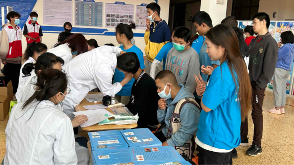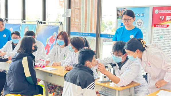 云南省中医医院滇池院区耳鼻喉科、眼科、妇科专家在学院玉璋楼大厅免费为学校师生进行专业一流、中西医结合的义诊活动。