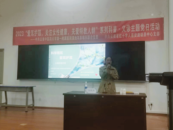 为进一步关爱学生健康,大力弘扬社会主义核心价值观,特殊教育与公共服务系党支部与云南省中医医院滇池耳鼻喉科联合党支部、云南省红十字人道资源动员中心支部、呈贡区红十字会于2023年3月27日联合开展“爱耳日”主题党日活动。