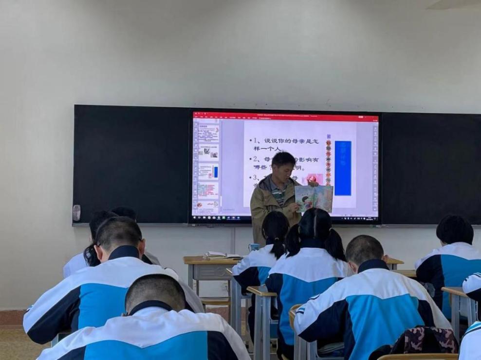 图为助教老师带领同学们进行绘本阅读