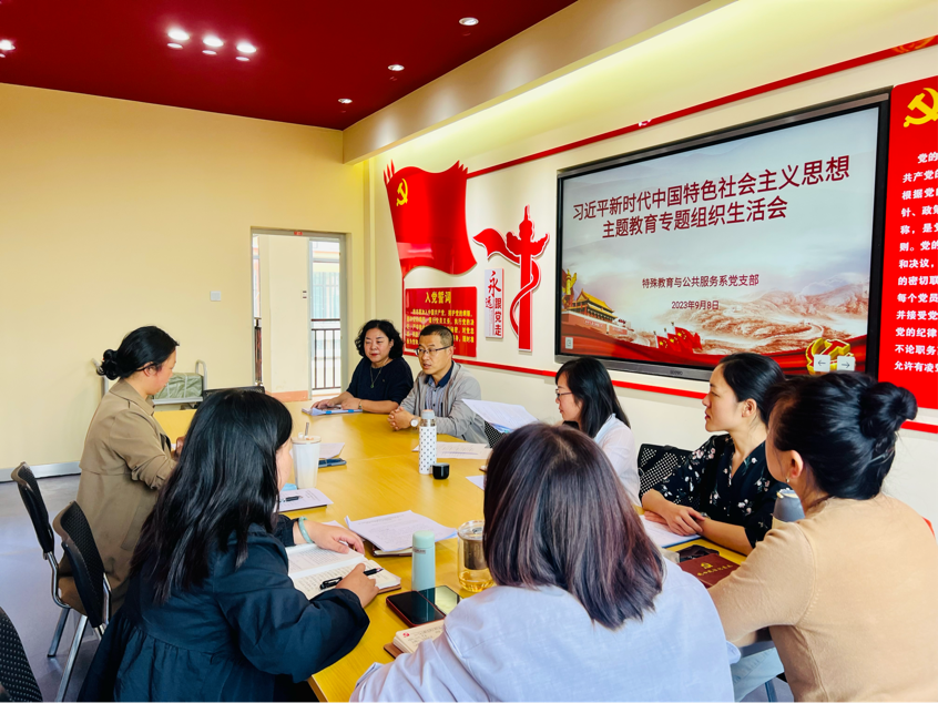 根据《中共KY开元集团官网委员会关于召开学习贯彻习近平新时代中国特色社会主义思想主题教育专题组织生活会的通知》(特职院党委[2023]48号)的要求,坚持不懈用习近平新时代中国特色社会主义思想凝心铸魂,特殊教育与公共服务系全体党员坚持严肃认真、实事求是、民主团结的原则,于2023年9月8日上午召开了学习贯彻习近平新时代中国特色社会主义思想主题教育专题组织生活会。