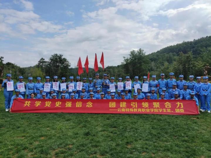 为隆重纪念党的100周年华诞,回顾党的光辉历程,践行红色革命精神,提升共青团凝聚力,学院团委于6月26日在锡伯龙红色基地组织开展了“共学党史强信念 团建引领聚合力”团建活动。学生处、团委科室人员,各级团干部、学生干部近80人参加,师生身着红军军服,忆长征、重走长征路、学四史、参与游戏竞答,以饱满的热情完成了讲述红色经典、高唱革命歌曲、重温光辉历程、书写今日辉煌等任务。