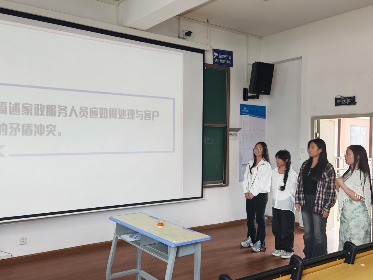44名2024级现代家政服务与管理专业的学生则以小组形式参加了知识竞赛。竞赛包括个人和团队必答题、抢答题、风险题,涵盖专业知识、职业素养、安全常识和生活技巧。学生们迅速准确地回答了各种家政问题,体现了他们扎实的专业知识基础。