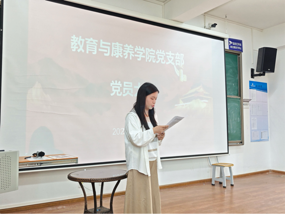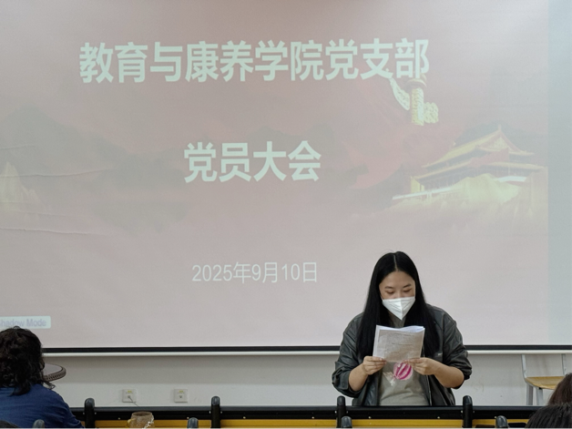 此次党员大会的召开,进一步加强了教育与康养学院党支部的思想建设和组织建设,提高了党员的政治素养和纪律意识,为推动学院各项工作的高质量发展提供了坚强的政治保障。