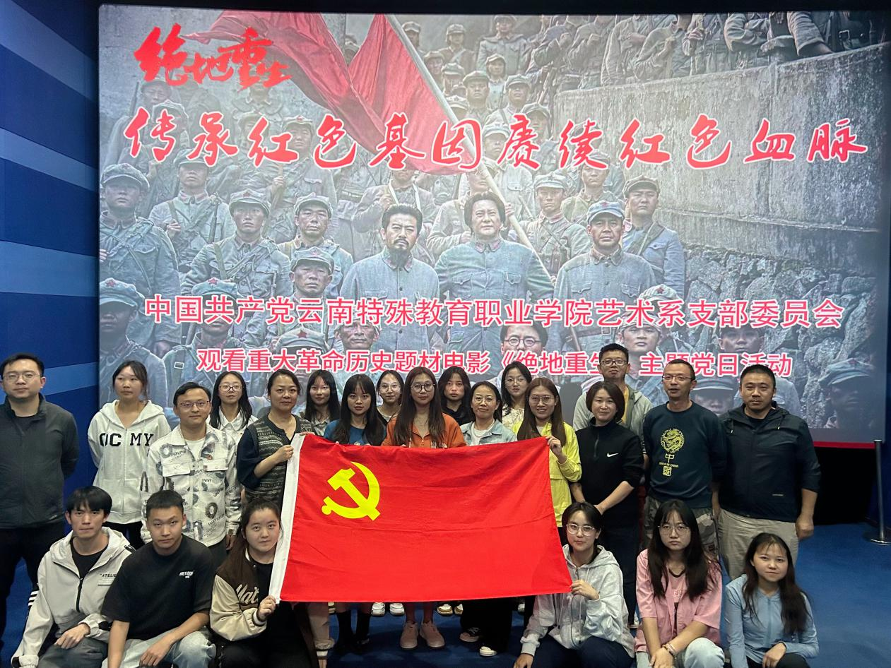 为深入学习贯彻党的二十大精神,进一步坚定师生理想信念,提升爱国主义热情,艺术系党支部于4月22日下午组织全体党员及入党积极分子观看电影《绝地重生》。