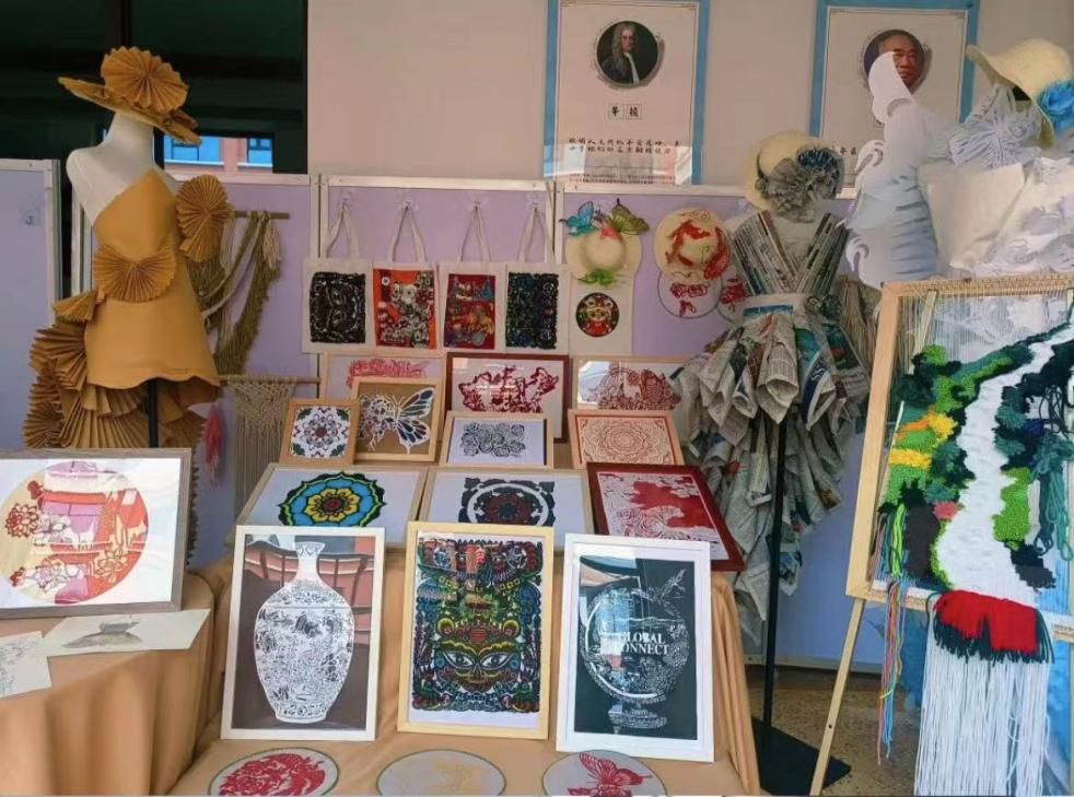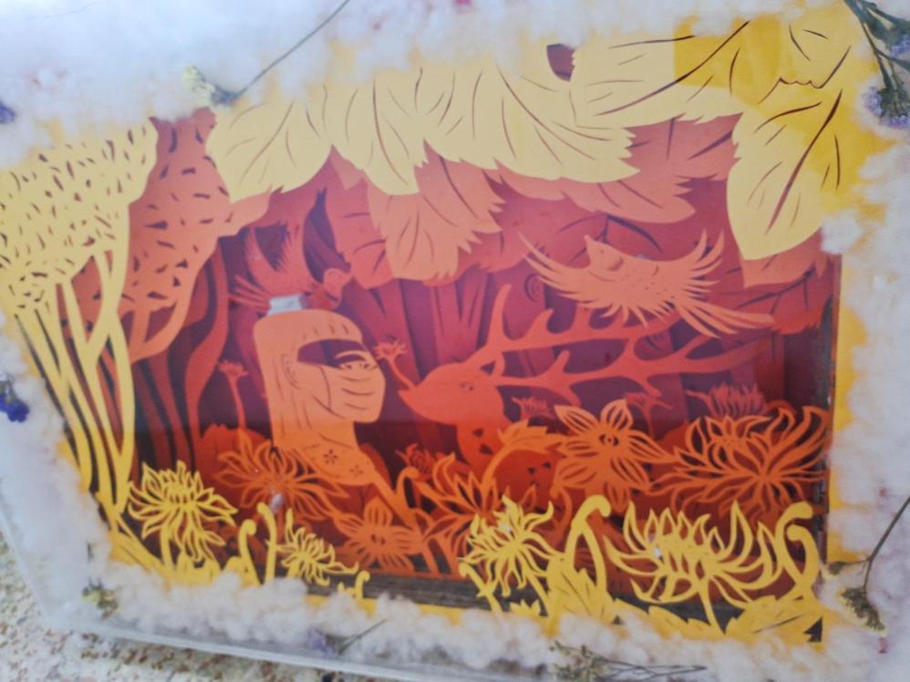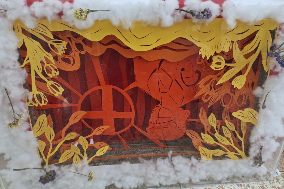 团队作品以剪纸、筷子、编织为主,以疫情为背景,增添了时令花朵,刻画了春夏秋冬四个季节,端庄大气的同时又不失简洁,寓意着望花开,疫情终。作品中的筷子和编织为辅助物,以筷子搭建其他物品,以编织花衣服为点缀,让整幅作品更为华丽。