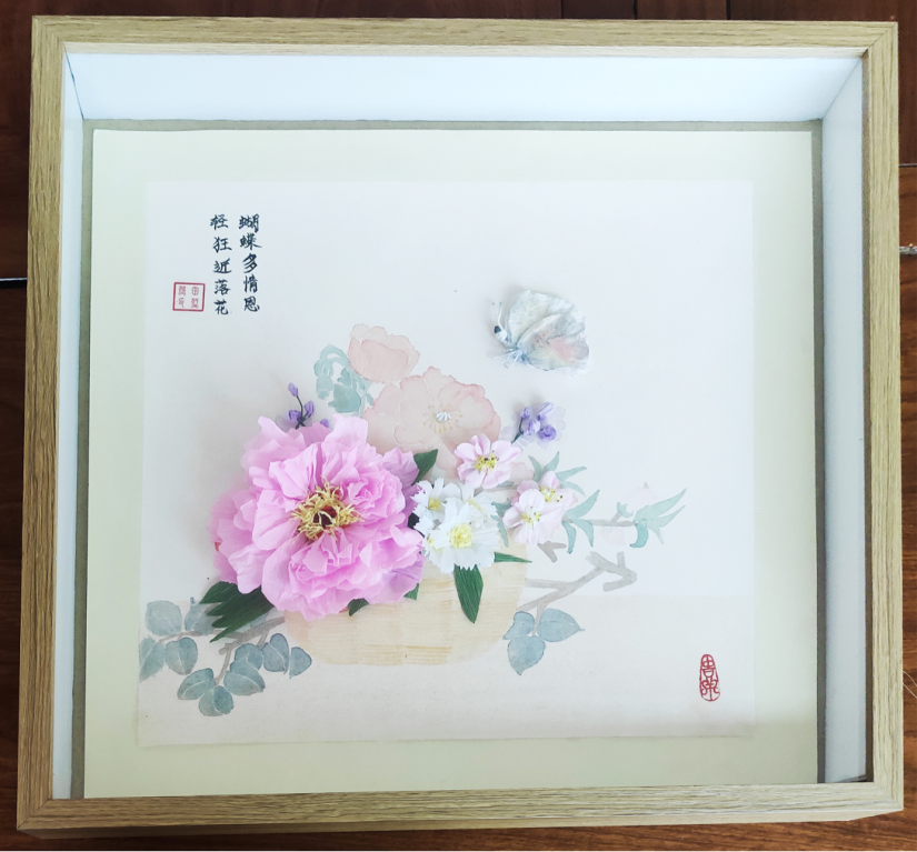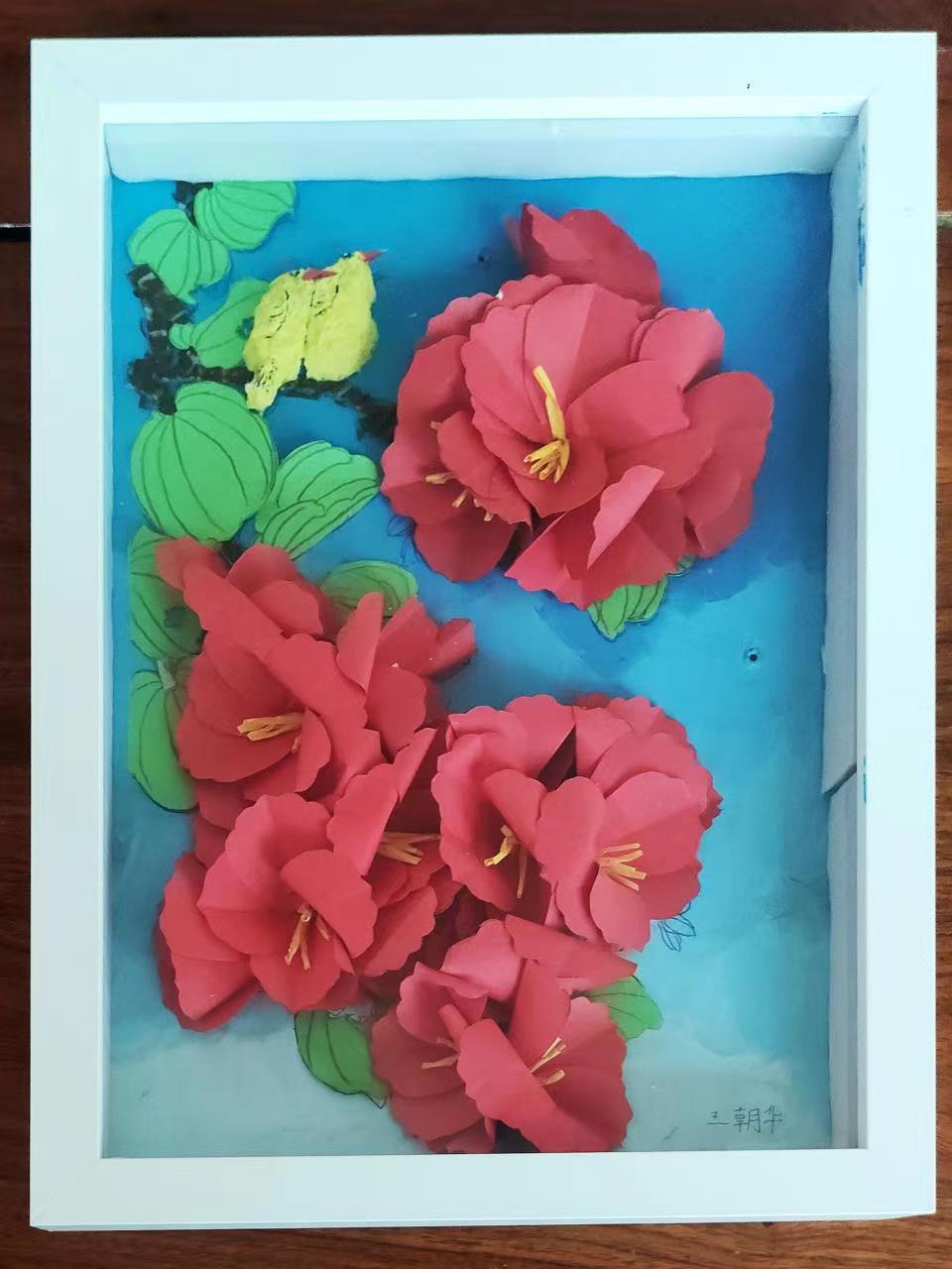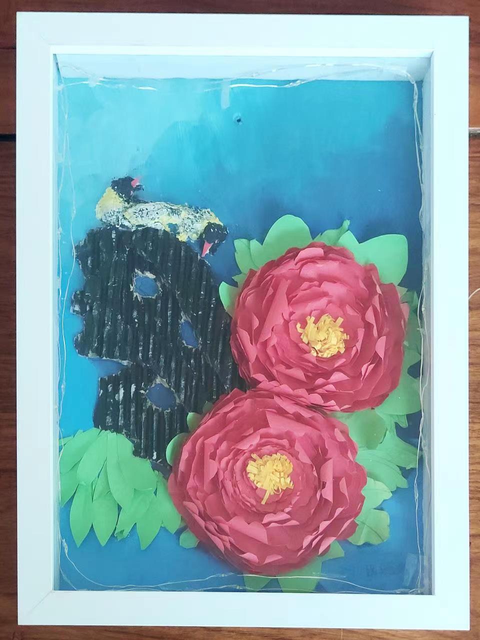 作品《牡丹争艳》综合了多种立体材料,色彩冲击力较强,展示出了该生对家具装饰画的较为深刻的理解。