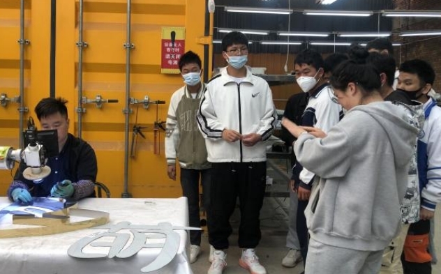 2023年3月16日,艺术系艺术设计专业教师程宁、工艺美术品设计专业教师包宇良带领36名中专二年级听障学生前往云南自由贸易试验区字造标识制作有限公司进行实践教学,同行前往的还有教学秘书和班级辅导员。