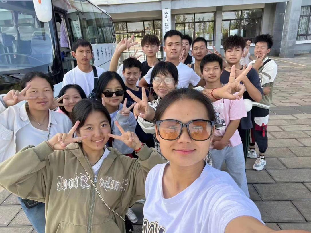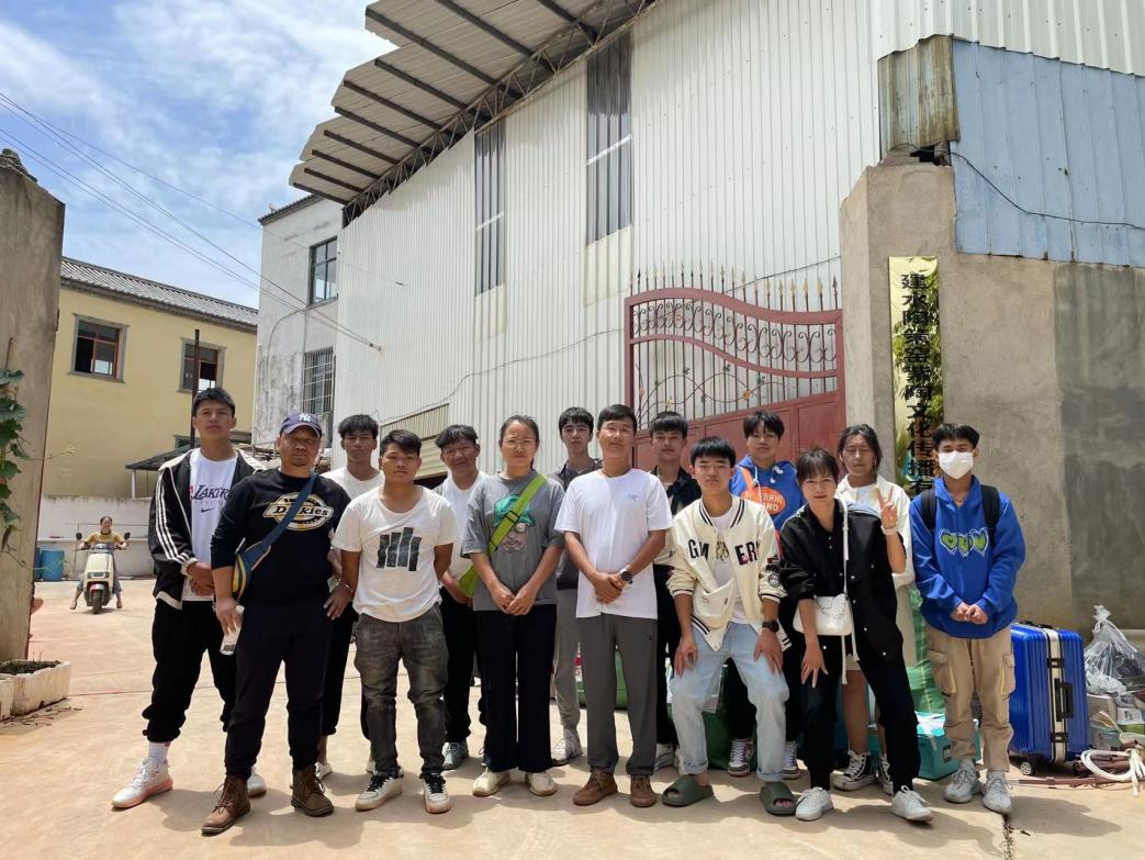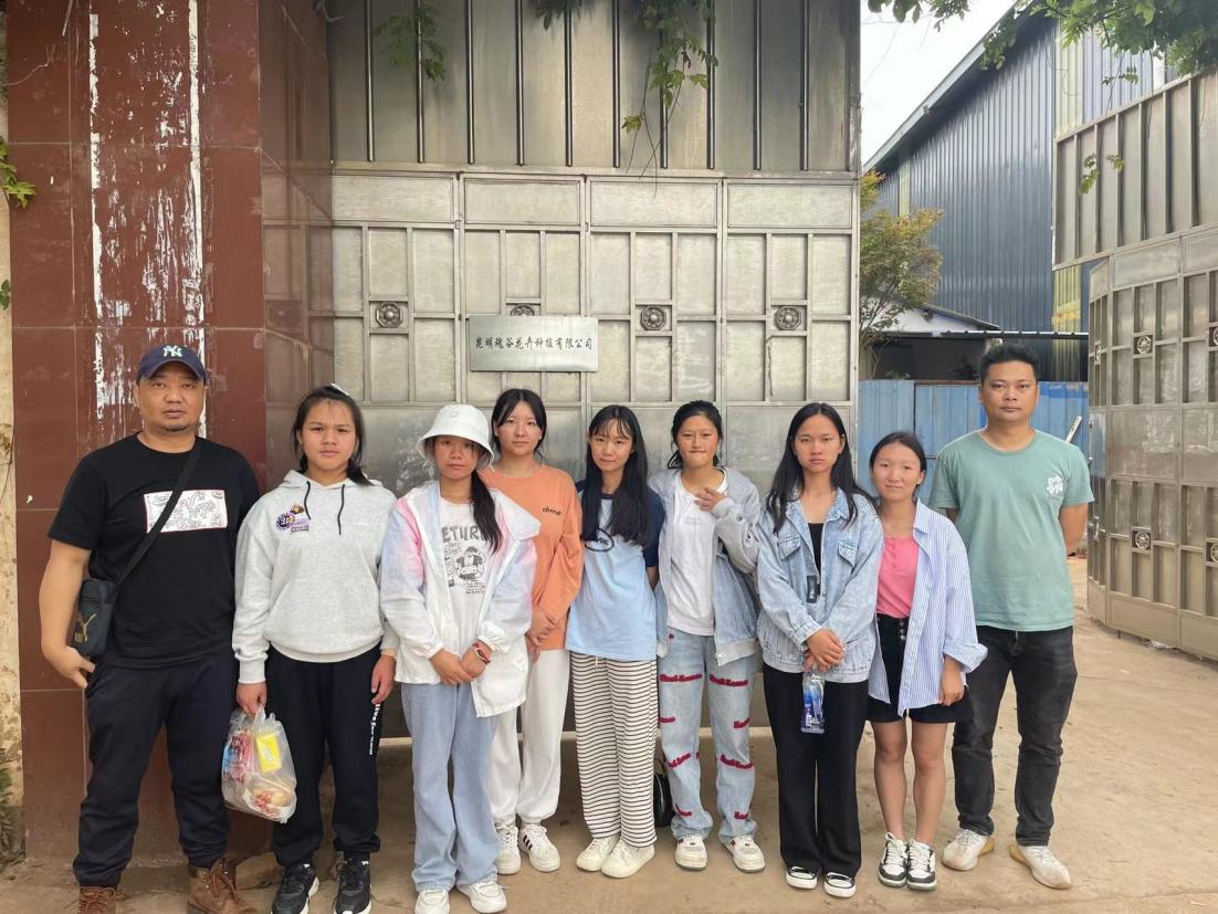 图2为7月14日辅导员杨冠雄老师送学生前往昆明紫阳花卉有限公司实习
