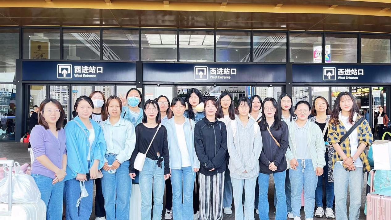 图9为7月24日美容美体专业田欣平老师送学生赴广东伊丽汇美容科技有限公司实习