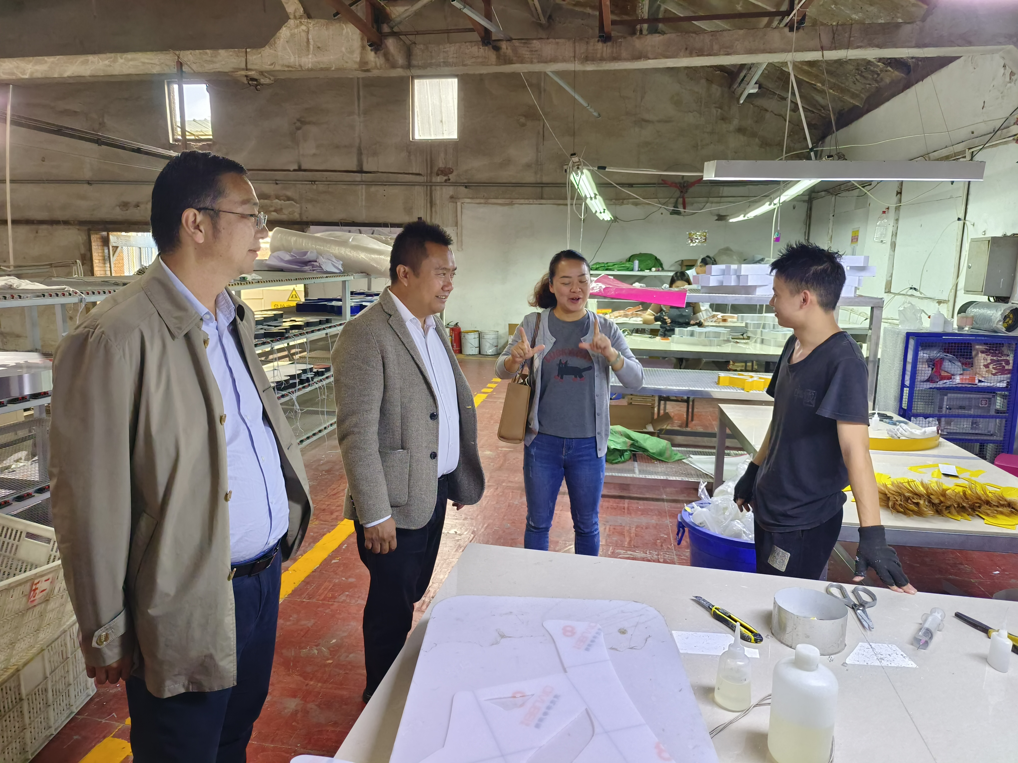 看望金骏腾公司包装车间实习听障学生